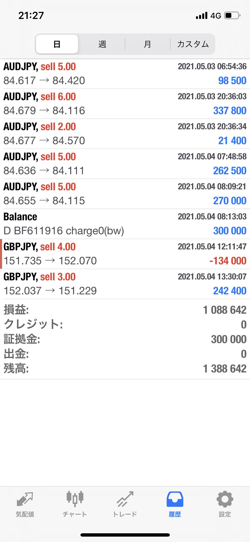 豪ドル円、ポンド円をショートエントリーして+317万円でした。