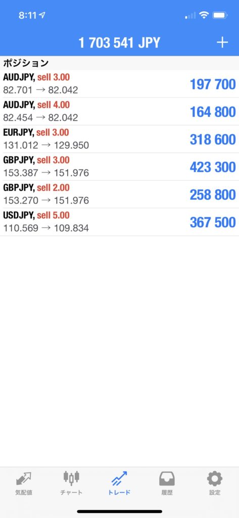 現状はポジション変わらずってところで、ポンド円が大きく上昇したので分割決済した分