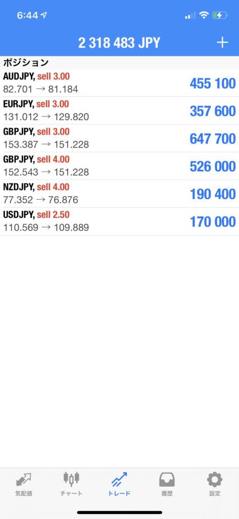 残りのクロス円ショートは、損切りラインを建値に移動してリスクなしで利益拡大狙います。