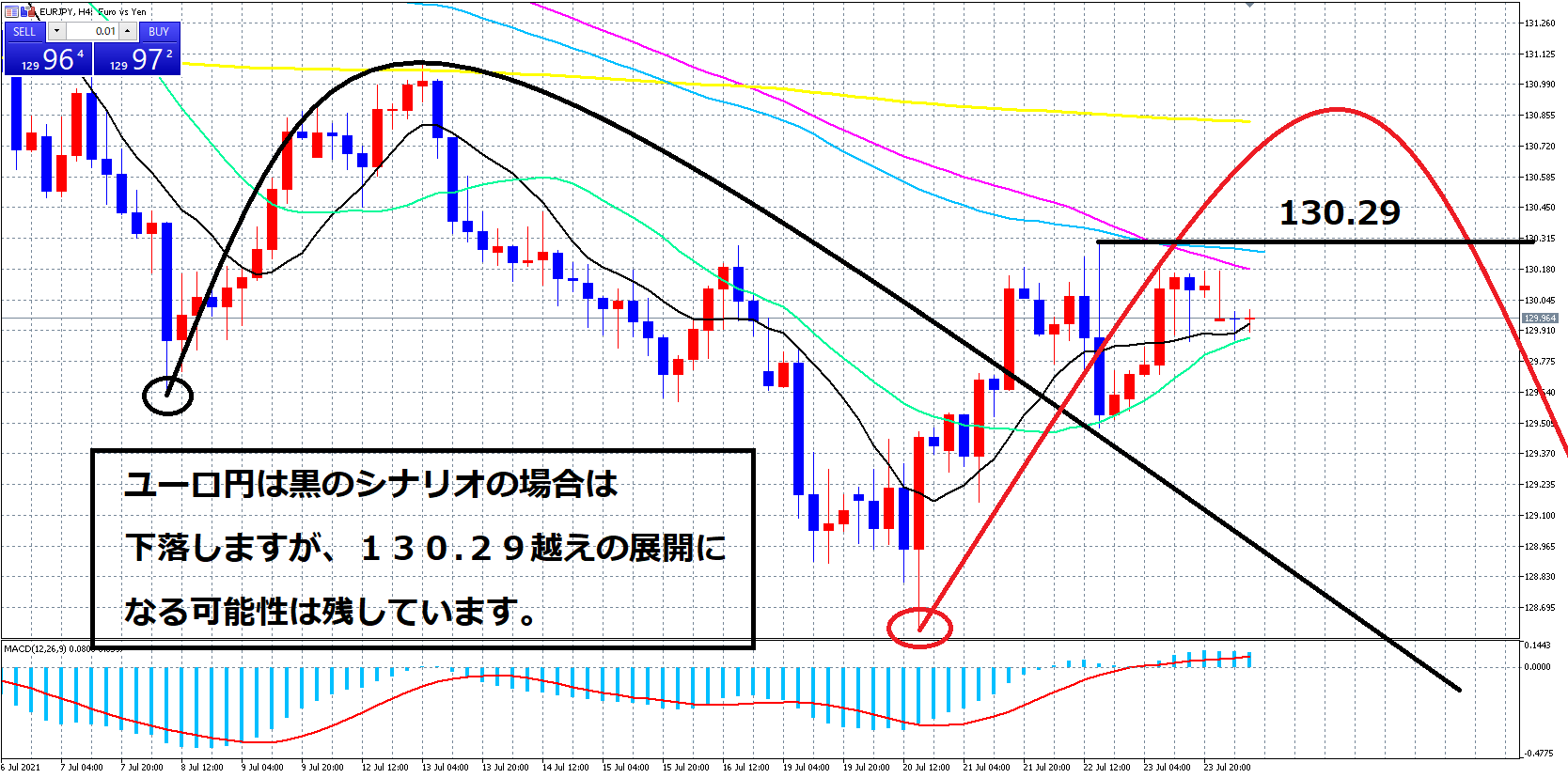 ユーロ円とポンド円は直近高値越えないという材料が今現在ないので、再度高値更新には注意が必要です。