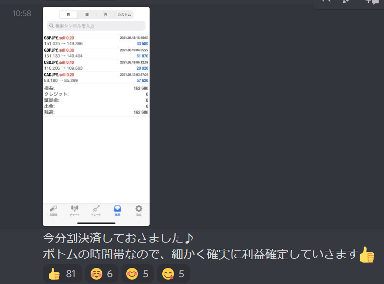 昨日は+27万円分割決済して、本日も+16万円分割決済しました♪