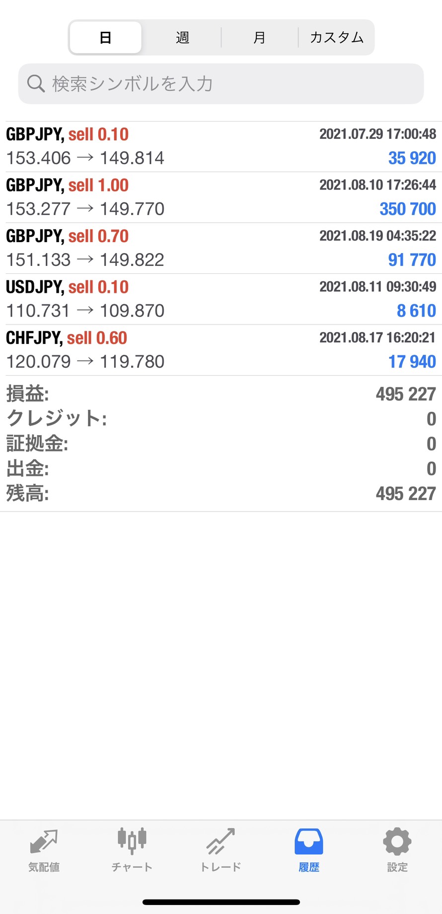 私の5年間の8月5日地点までのトレード履歴になりますが、+9120万円です。