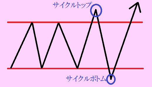 一度目のレジスタンスラインのブレイクは、サイクルトップと認識し、二度目のサポートラインのブレイクはサイクルボトムと認識できるからです。