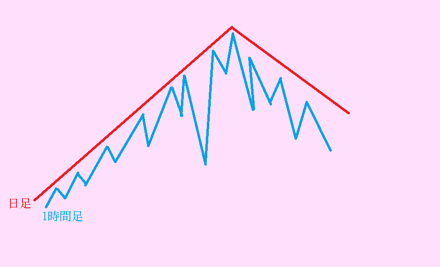 その中で、日足より短い時間足が上下を繰り返し、日足がアップトレンドを形成していきます。