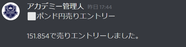昨日アカデミーで売りエントリー配信をしましたが、バッチリの展開ですね👍