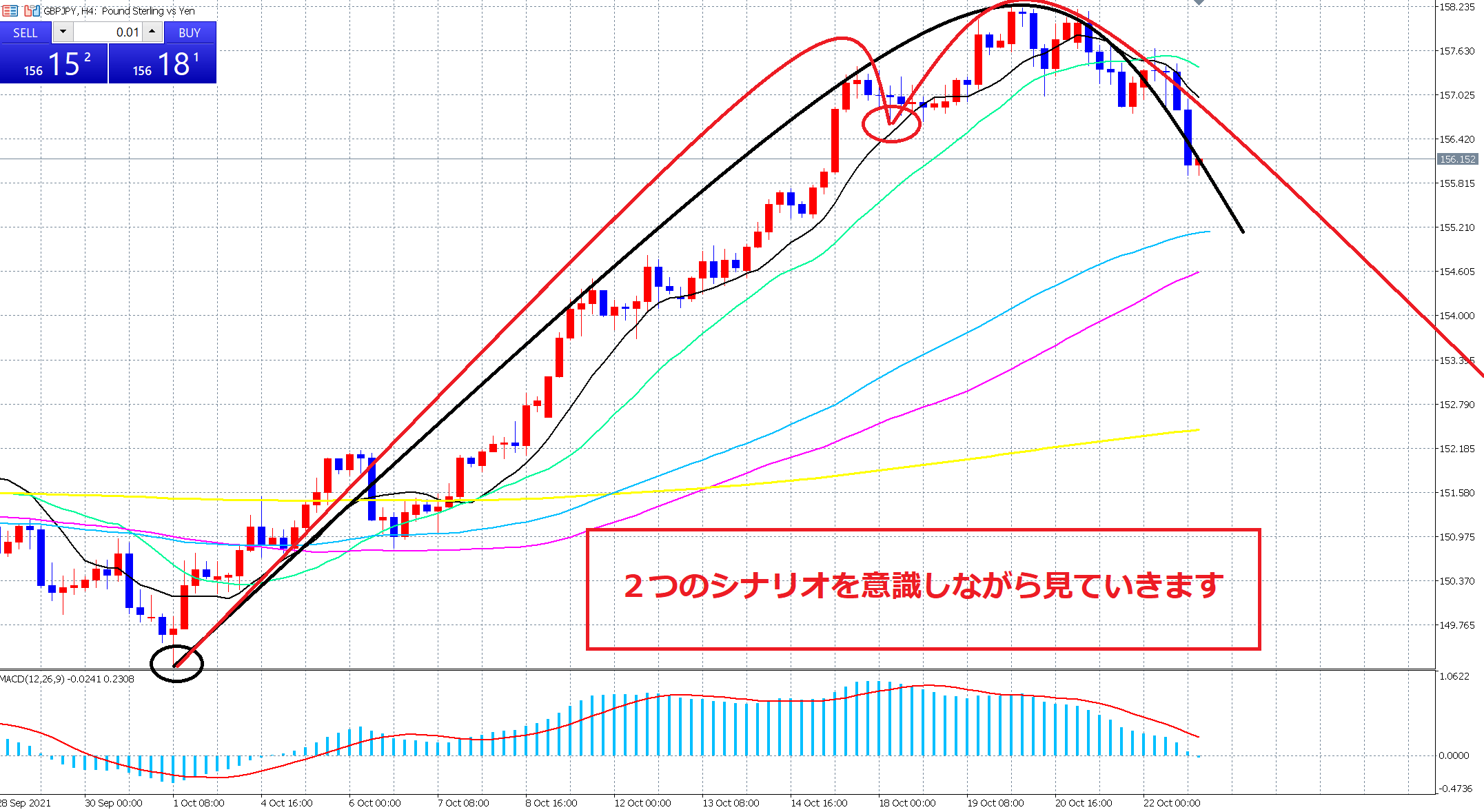 続落していきますので、2つのシナリオを意識しながら見ていきましょう。