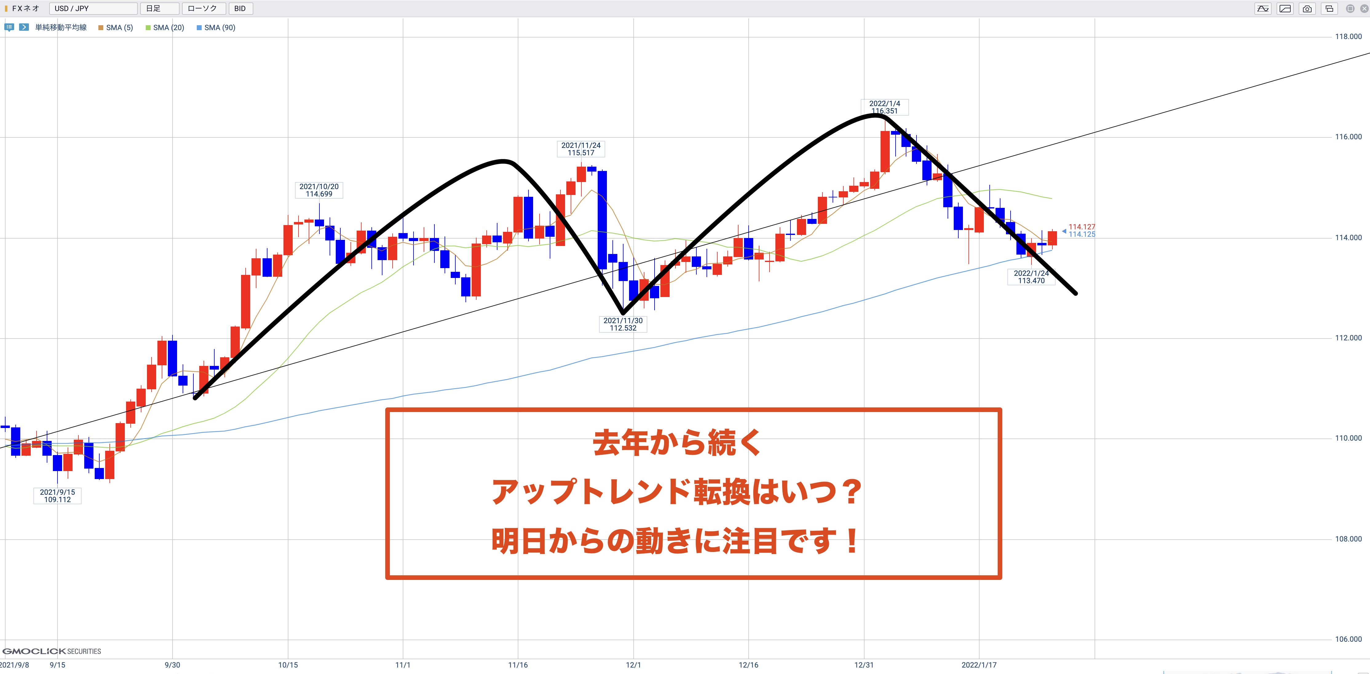 中長期では昨年始からアップトレン度が続いているドル円ですが、