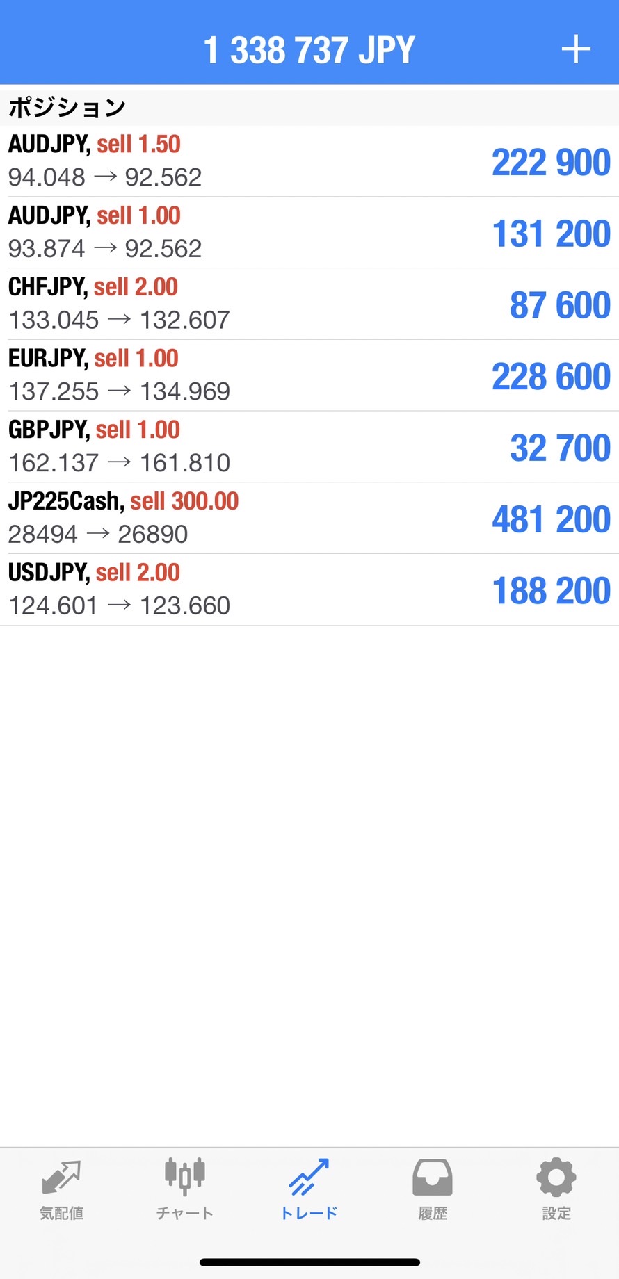 さらに全ポジション分割決済で、利益確定済みなので、ノーストレスのお気楽トレードです。