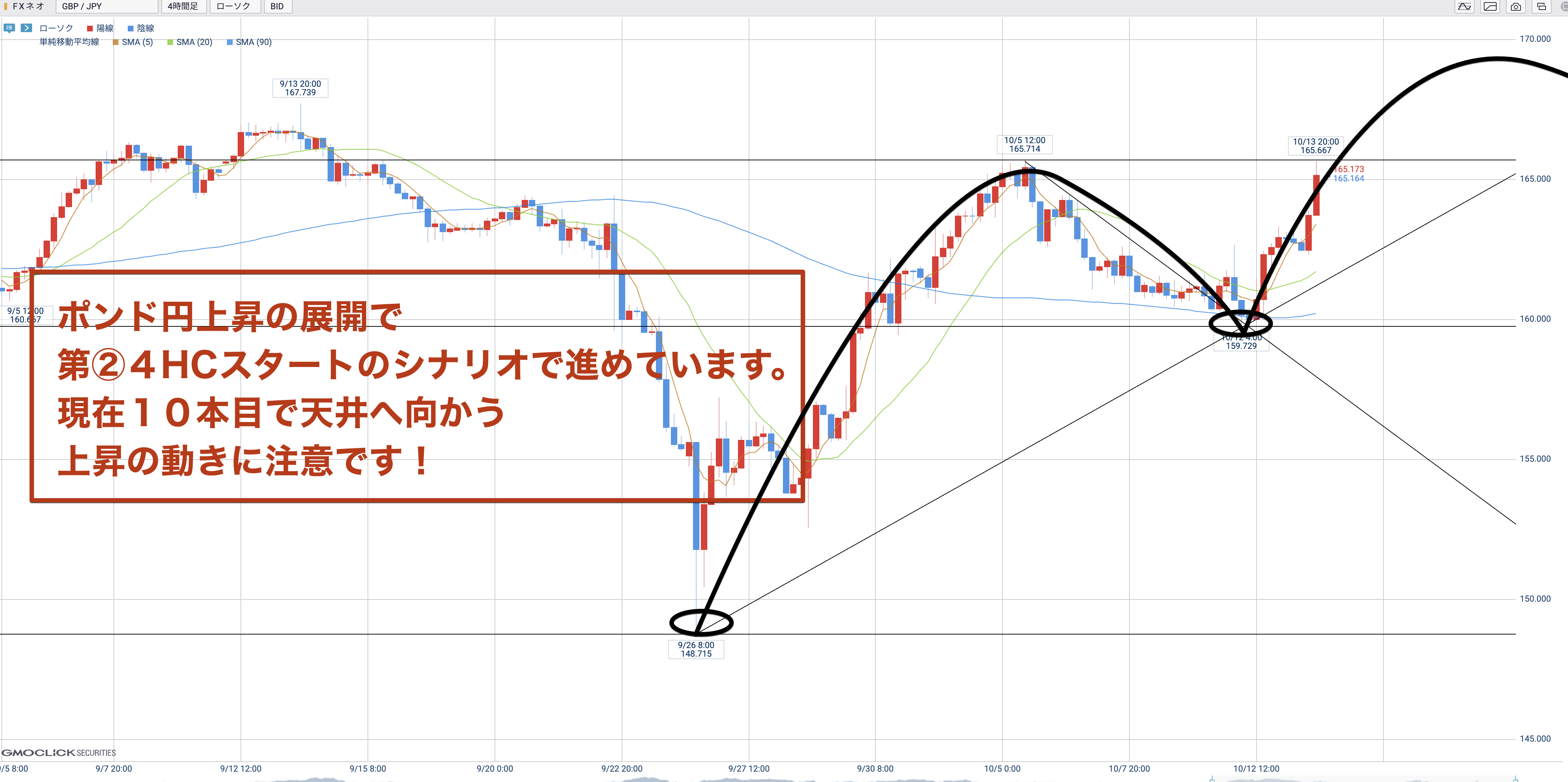 画像ポンド円4HCは現在10本目のシナリオ。