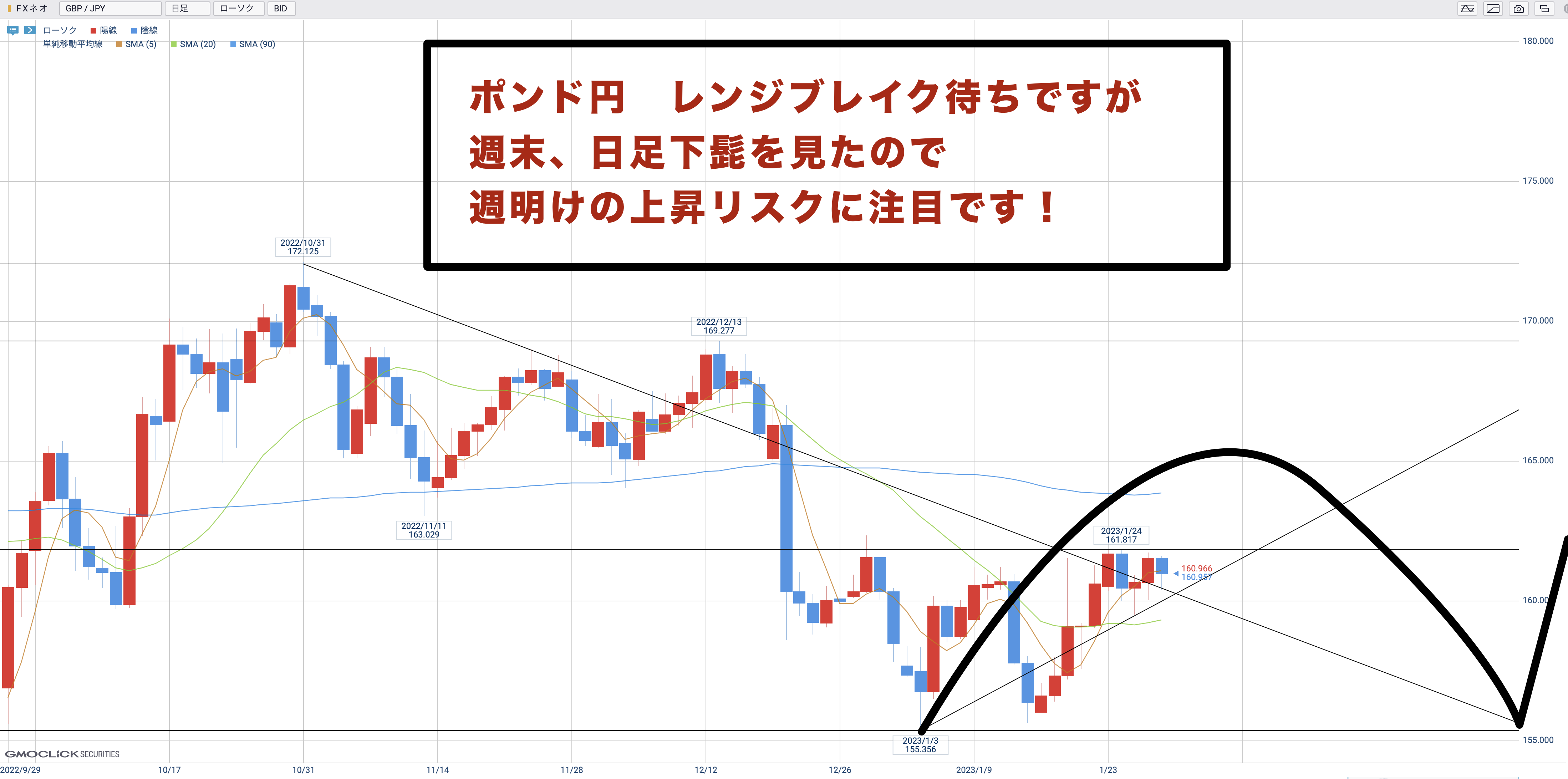ポンド円は週末に下髭完成させましたね!