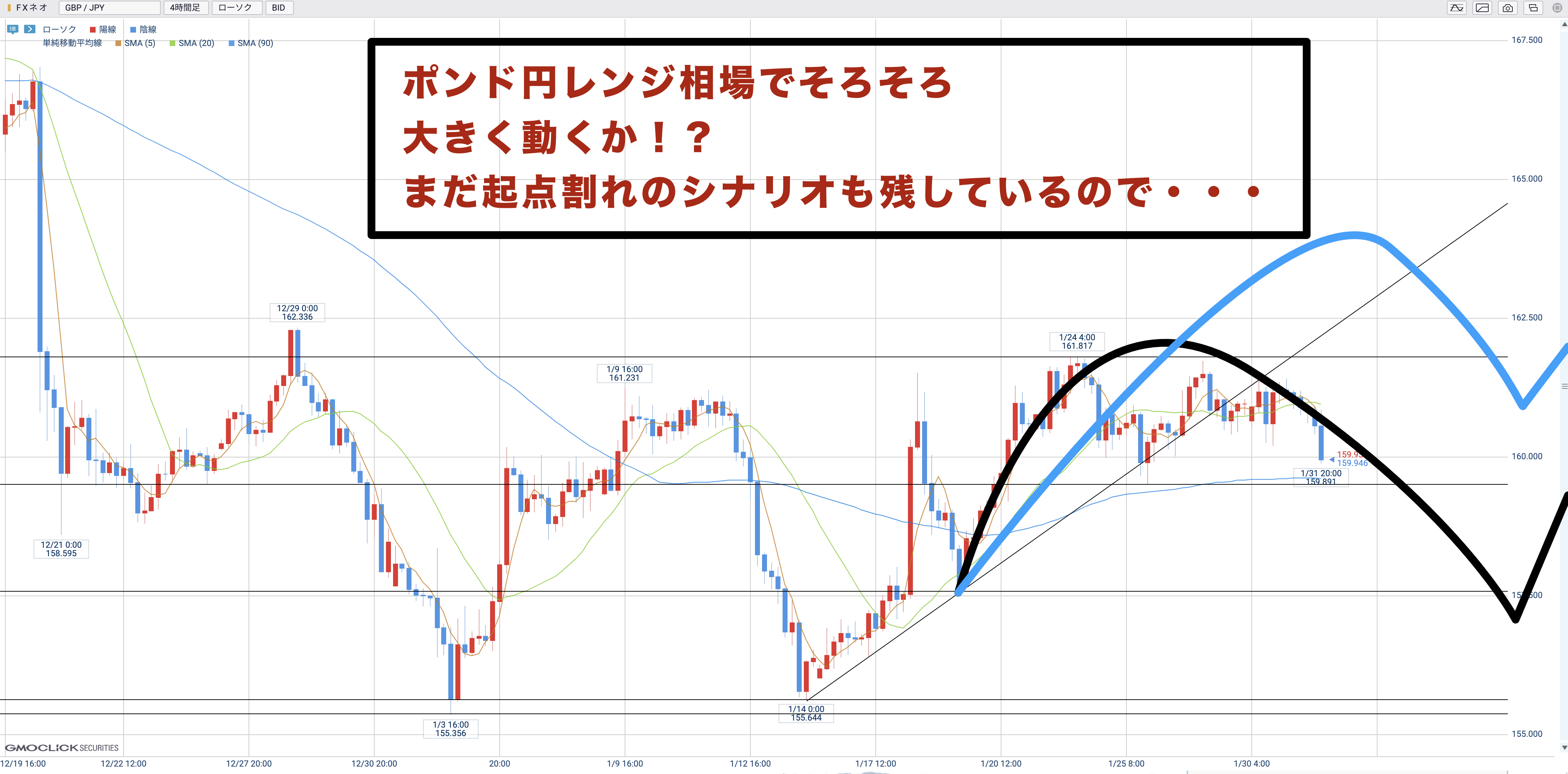 現在ポンド円が起点157.573から54本目のシナリオ。