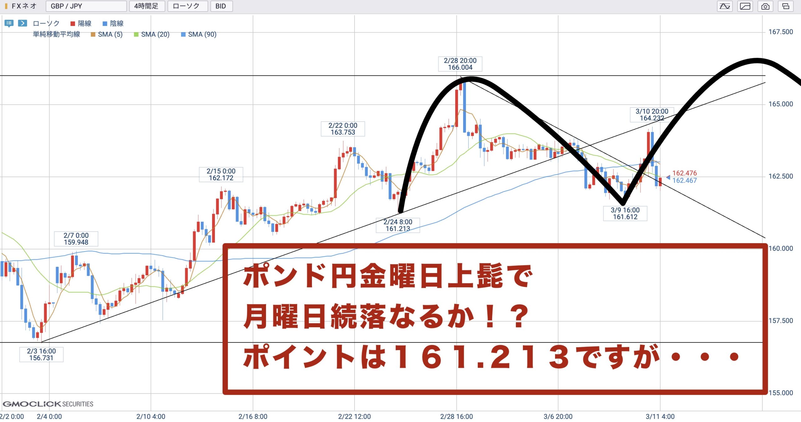 日足はとりあえず161.213からのシナリオで見ていますが、