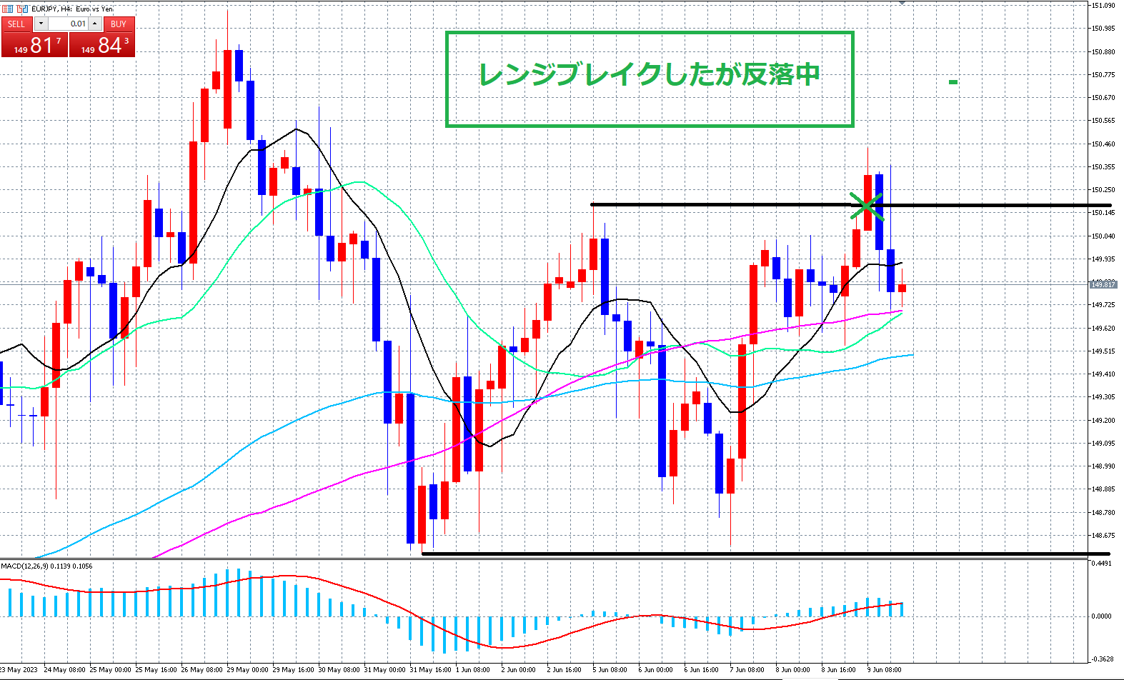 このまま下落すれば、レンジブレイク騙しの形になります。