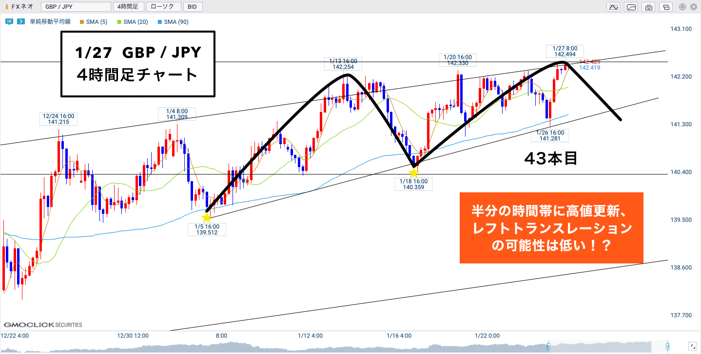 4Hサイクルは60本〜80本で1サイクルを形成するので、ちょうど半分くらいの時間帯です!
