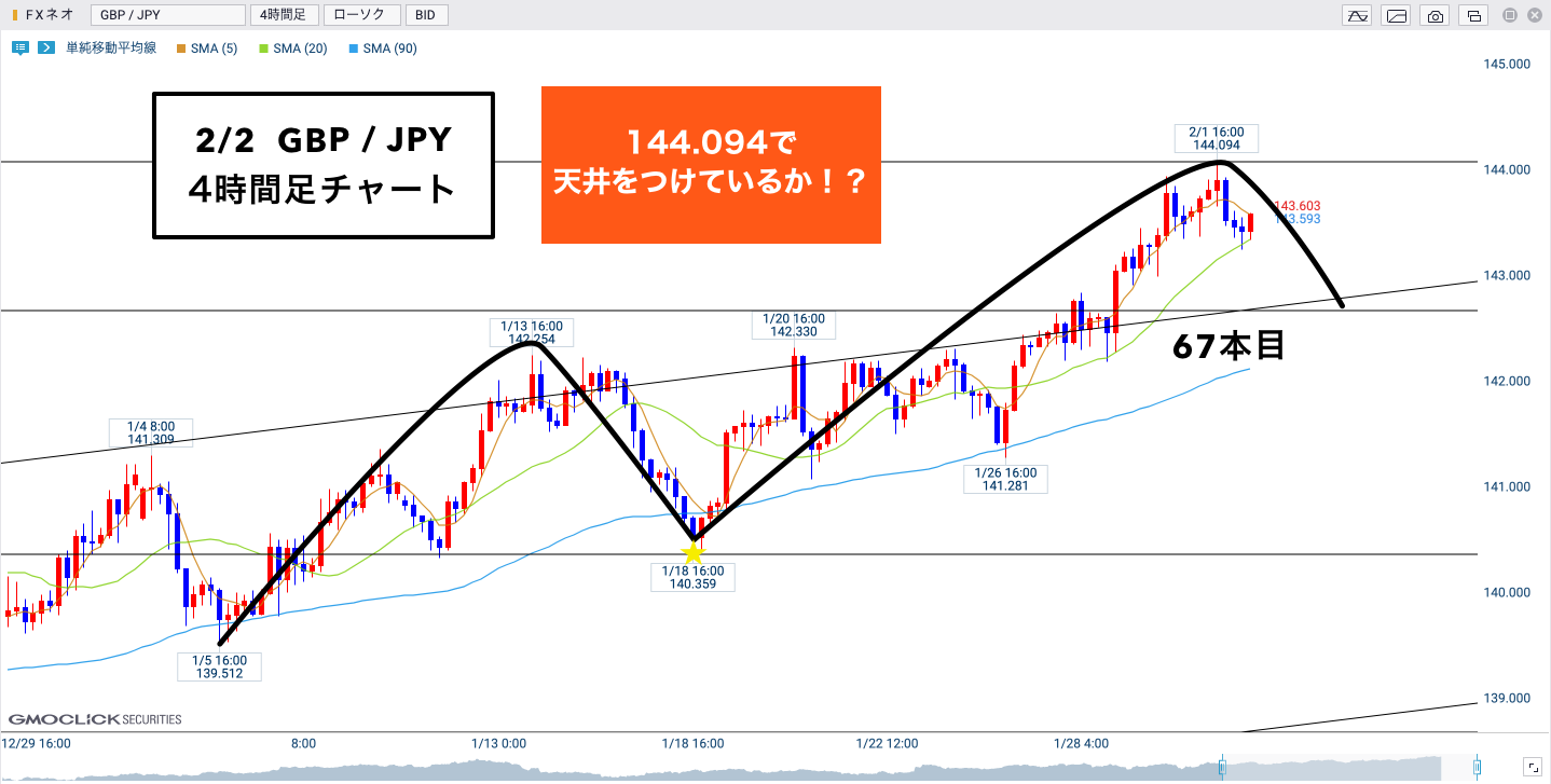 もちろん高値更新していくシナリオも想定しながら、短期は上値144.094・下値142.190付近をブレイクしていくかどうかに注目していきましょう!