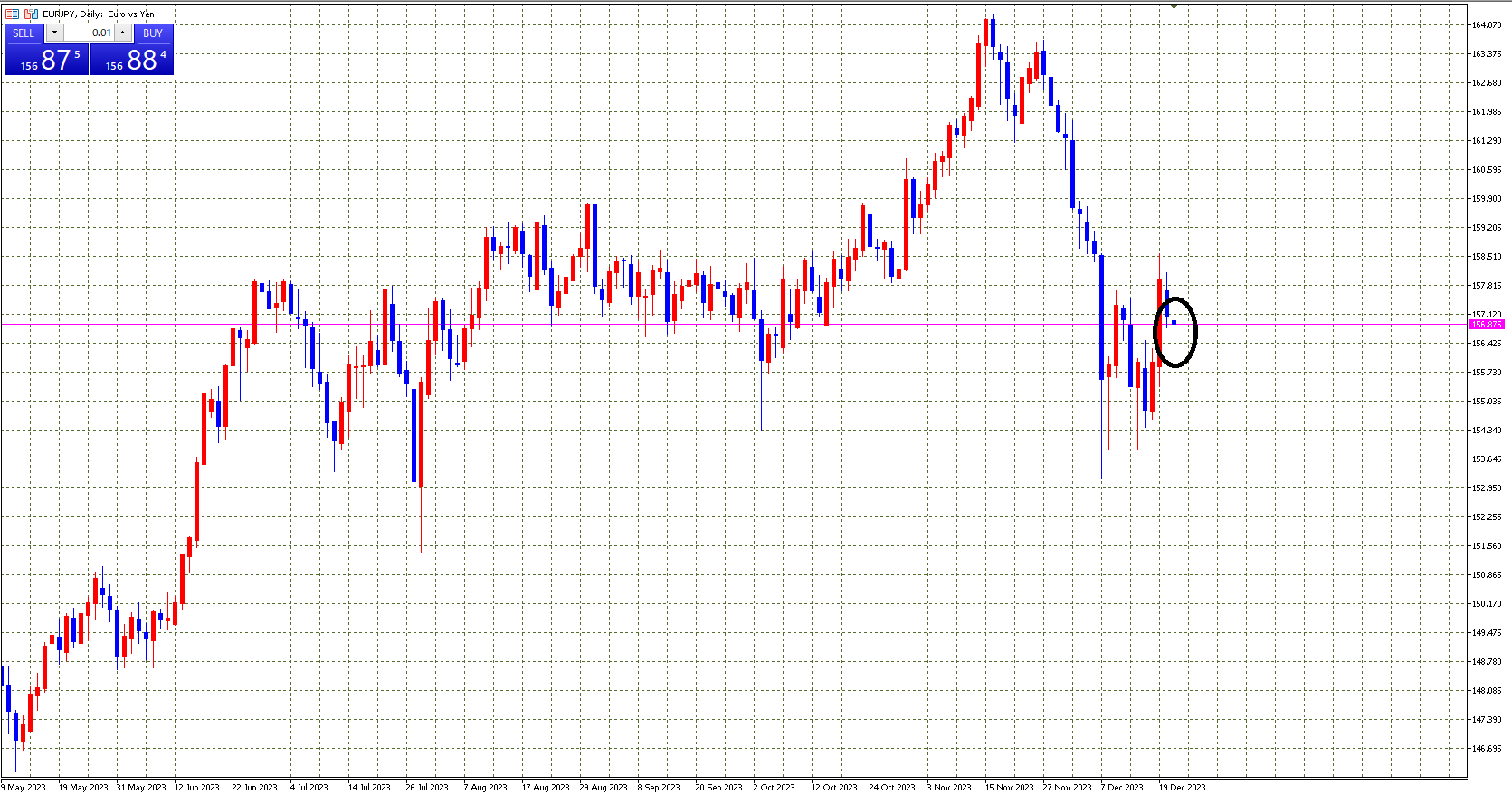 ユーロ円日足チャート