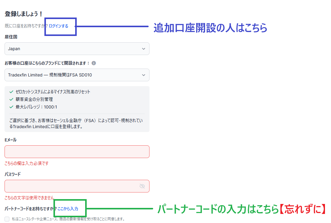 (※すでにXM口座をお持ちの方は下記のリンクから、お持ちのアカウントにログインして、ホームから画面中央の追加口座開設をクリックしてください)