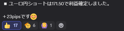 多くの方が、ユーロ円売りエントリーでうまく波に乗れましたね👍