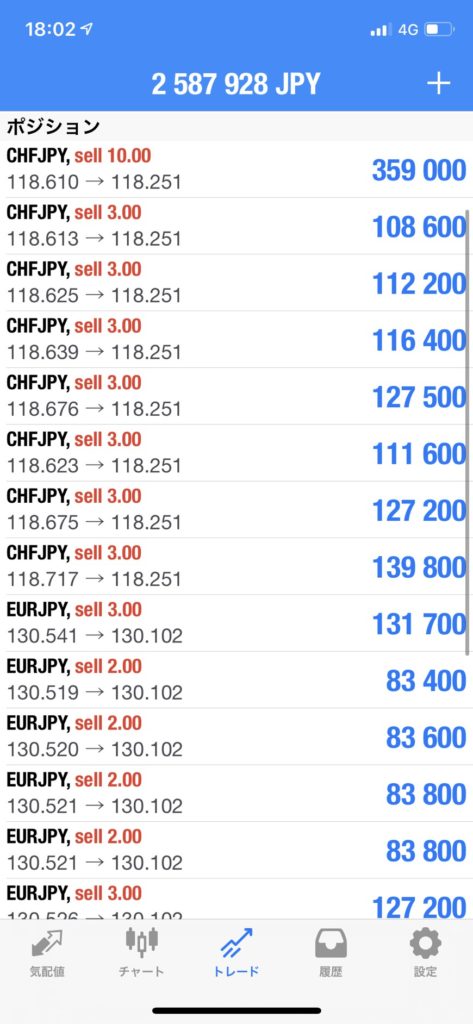 ポジションはユーロ円とスイス円を売りを保有中です!
